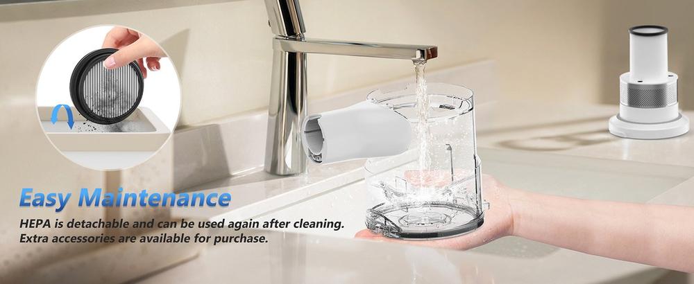 Wat de reiniging betreft, biedt het uitneembare HEPA-filter echt gemak. De maanlanding lijkt eenvoudiger dan sommige filters uit andere stofzuigers verwijderen, maar hier is dat niet het geval.