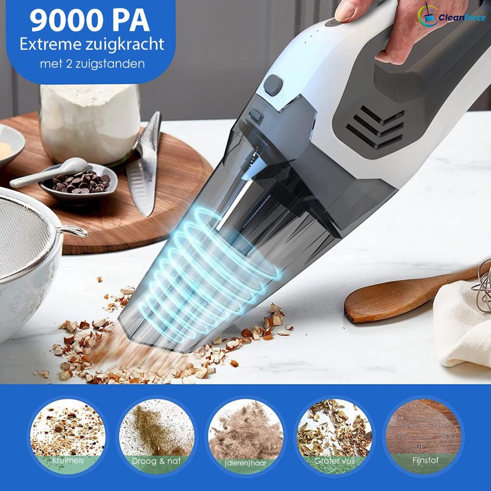 Toen ik de Cleanforce kruimeldief Pro voor het eerst uit de doos haalde, was ik vooral benieuwd naar de beloofde zuigkracht van 9000 PA. En laat me je vertellen, die verwachtingen zijn meer dan waargemaakt.