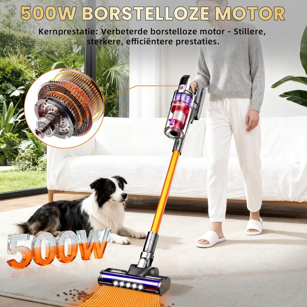 Met een 500W motorvermogen dat een indrukwekkende kracht van 75.000Pa levert, trok deze stofzuiger zonder enige moeite niet alleen huisdierenharen, maar ook die vervelende kruimels die zich graag tussen de tegels van mijn keuken verschuilen.