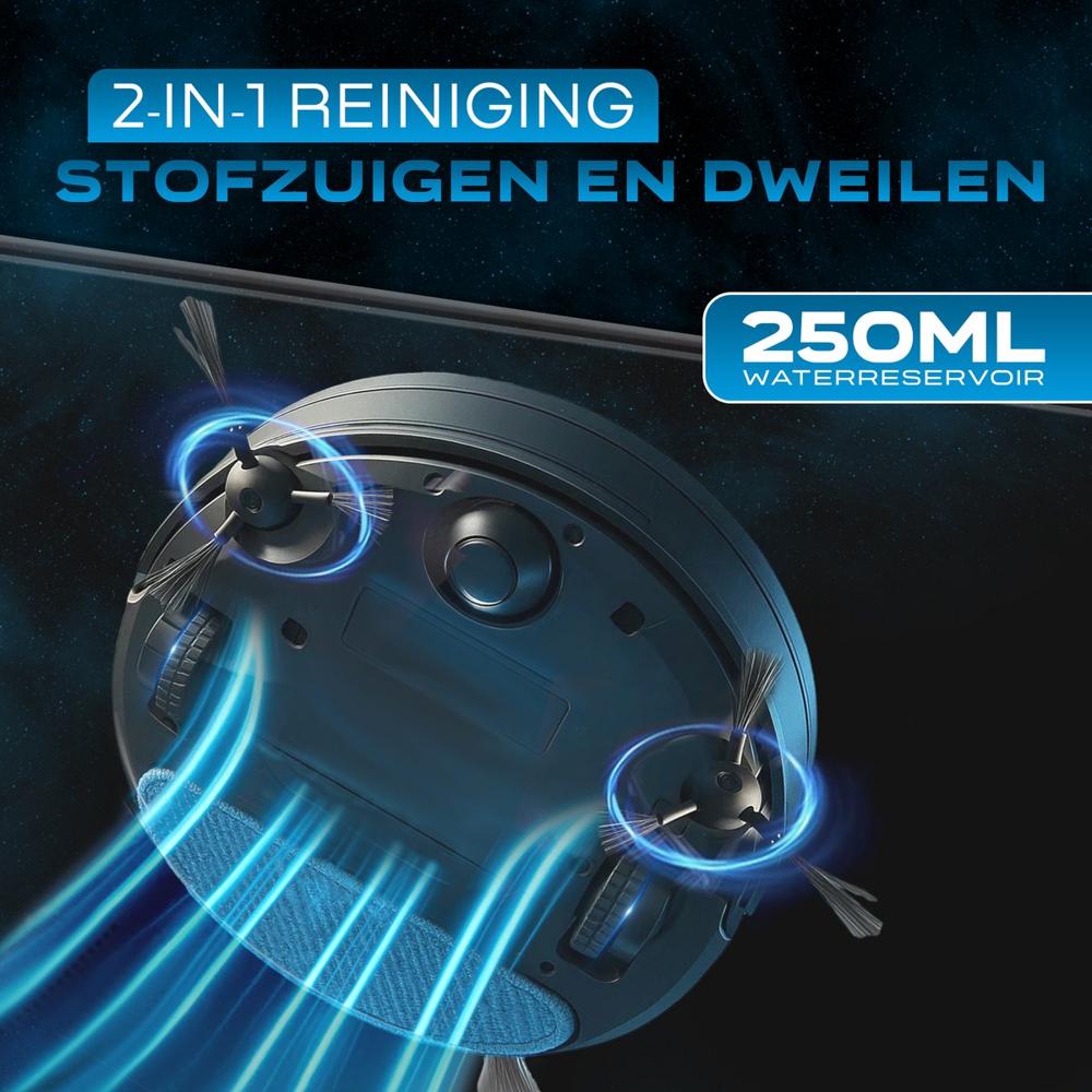 | Belangrijk voor jouw situatie? | Maakt hoekjes schoon, Kan over drempels (2 cm), Loopt niet vast op kabels, Vuildetectie, Afgronddetectie, Tijdschema instellen, Automatisch opladen en hervatten |