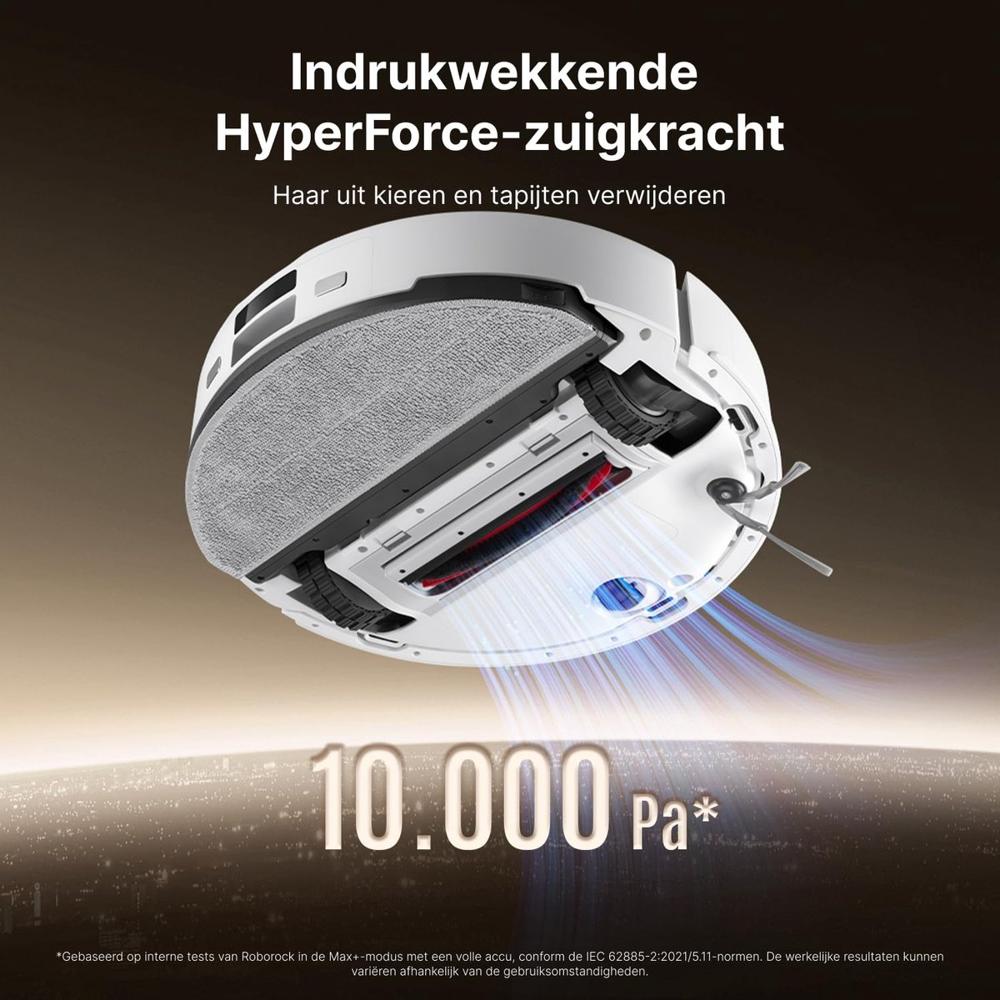 De vuilopname is werkelijk fenomenaal dankzij de indrukwekkende HyperForce-zuigkracht van 10.000 Pa. Het is alsof je een tornado in huis hebt die elke zandkorrel en kattensnor moeiteloos opslokt.