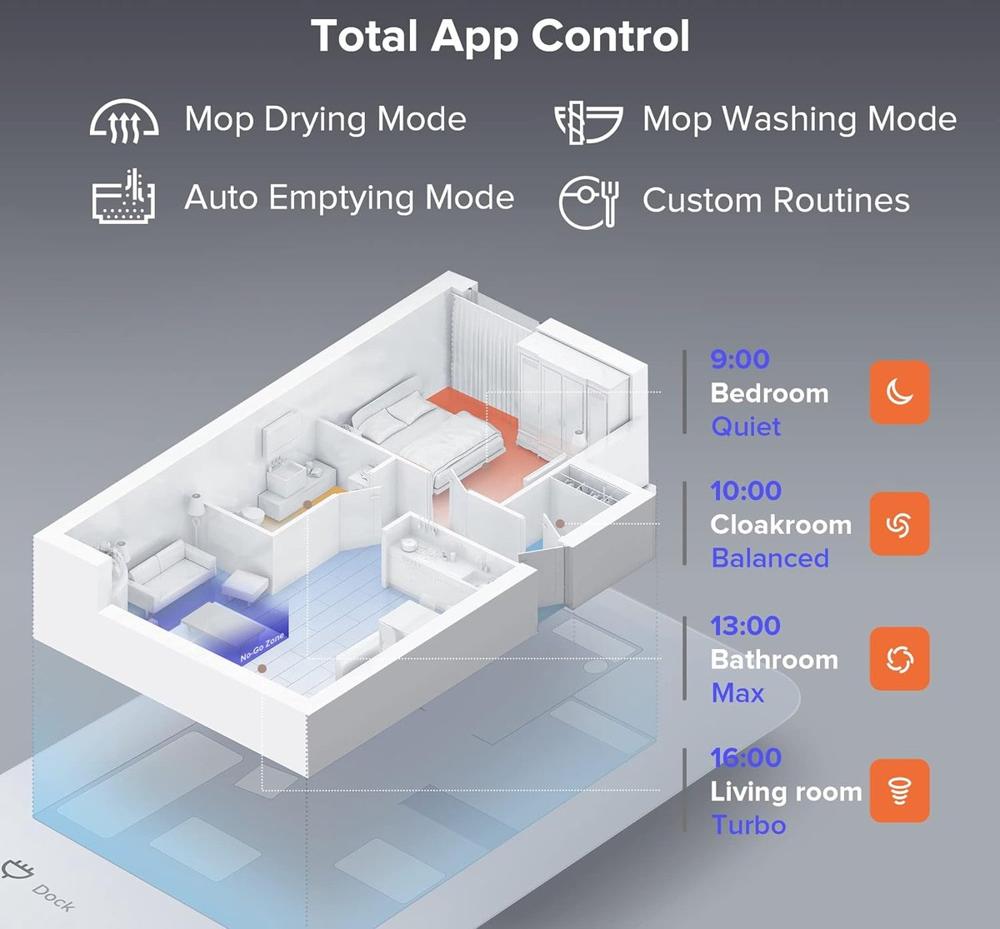 Of ik nu specifieke kamers wilde laten opblinken na een druk familiediner, of alle nooks en crannies tegelijk wilde laten feesten met een poetsbeurt, het kostte slechts een paar tikken op mijn scherm.