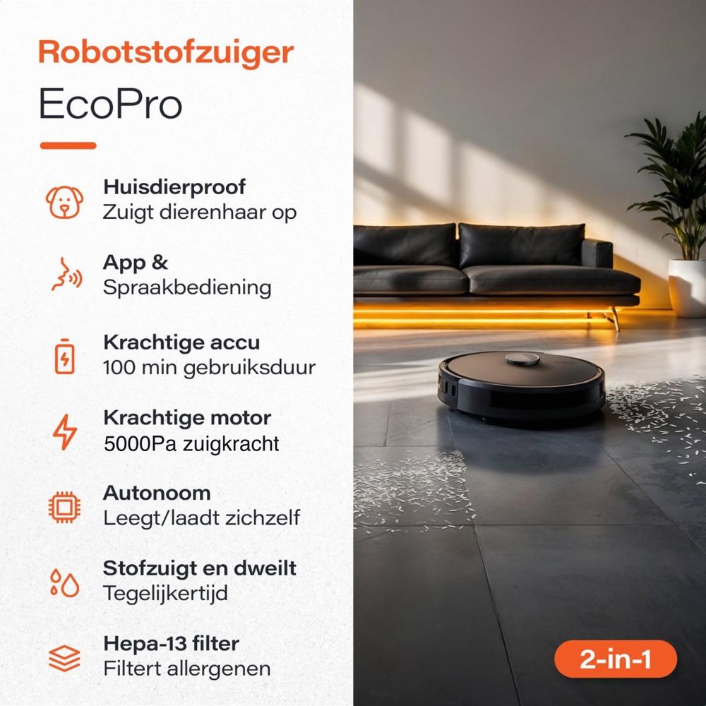 Deze robotstofzuiger van Skoov wordt duidelijk geroemd om zijn geavanceerde navigatie, krachtige reinigingscapaciteiten en gebruiksvriendelijke app. Het apparaat is bovendien onderhoudsvriendelijk en heeft een indrukwekkende batterijduur, waardoor het praktisch in het dagelijks gebruik is. Kortom, deze EcoPro biedt een uitstekende combinatie van technologie, gemak en efficiëntie, waardoor het zeker een aanrader is voor wie op zoek is naar een slimme en betrouwbare schoonmaakpartner.