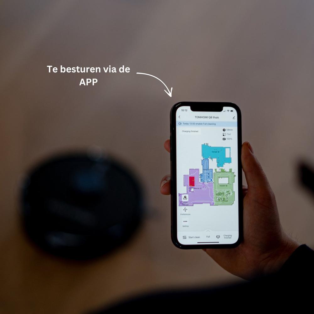 De TONIHOMI® Q8 robotstofzuiger biedt krachtige zuigkracht en een slimme dweilfunctie, alles eenvoudig te bedienen via een app met geavanceerde navigatietechnologie..