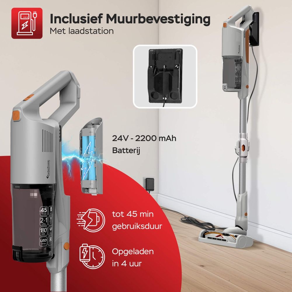 Maar voor de meeste dagelijkse klussen volstaat de batterijduur ruimschoots. Kortom, de batterijduur van de TurboTronic is een sterke troef die het schoonmaken efficiënter en minder stressvol maakt.